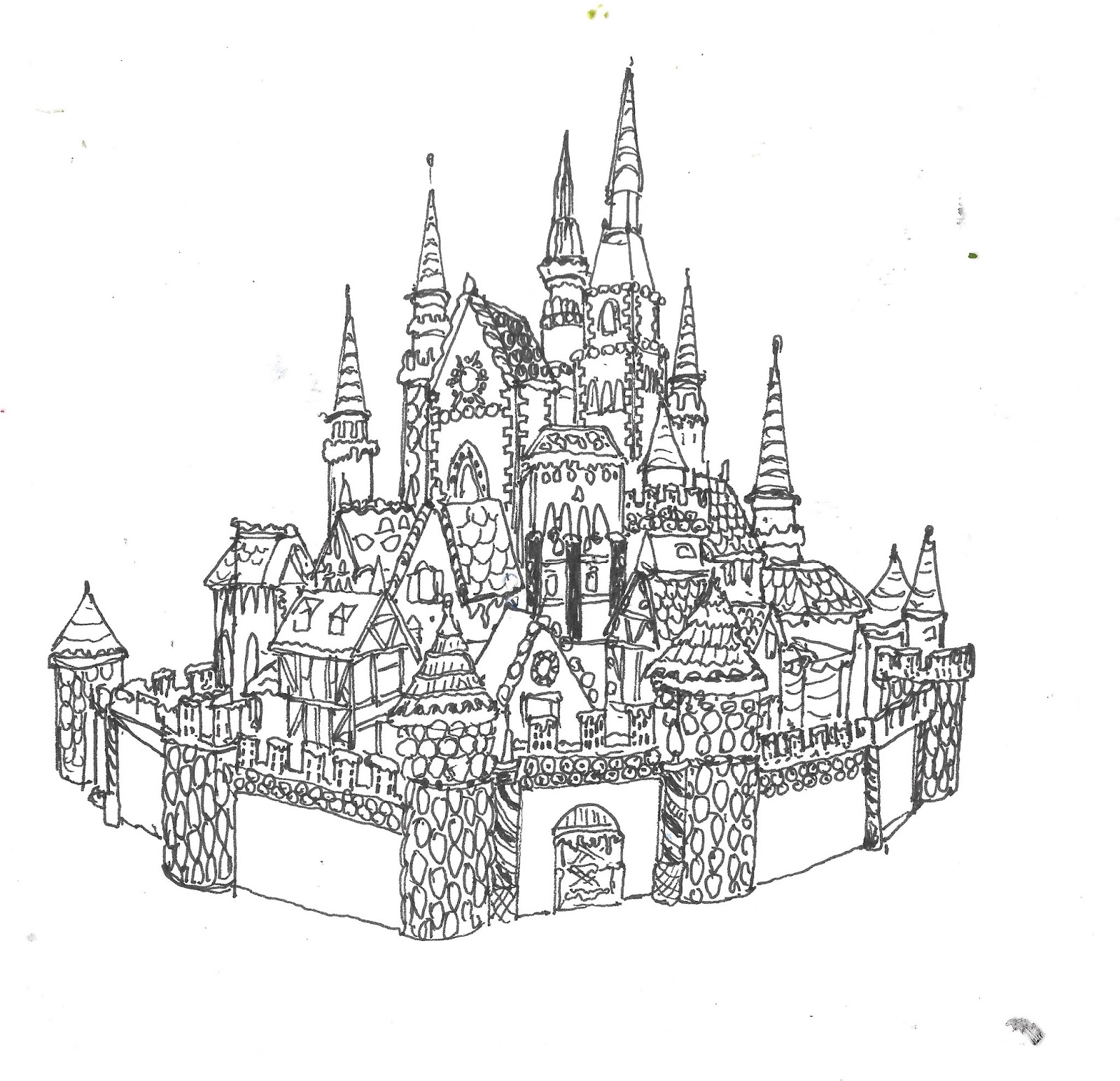 Prompt from Sketching Every Day - gingerbread house. Being the show off that I am, I had to try to go a bit better than mere house. When I'd finished this it suddenly struck me that this resembled Hogwarts a little. Which sowed a seed for the next day .. .