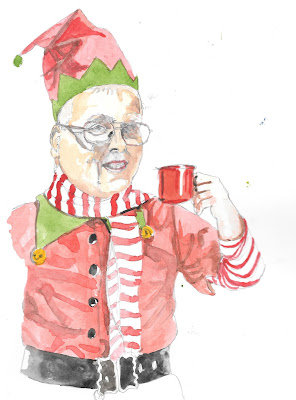 That's not very seasonal is it? Sorry. Yesterday's prompt on Sketching Every Day was to depict a holiday song, and I recalled seeing the Rockwell picture which this one tries to copy. Bearing in mind my experience of a couple of days ago I made this one into a card just in case the need should arise during the next day or two.